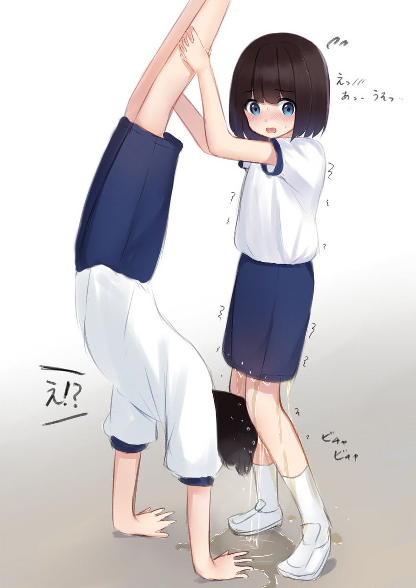 お題箱より 体育の授業の器械運動で補助倒立してる時に限界が来ちゃって、お漏らしの勢いが強すぎてペアの子にぶっかけちゃう女の子。