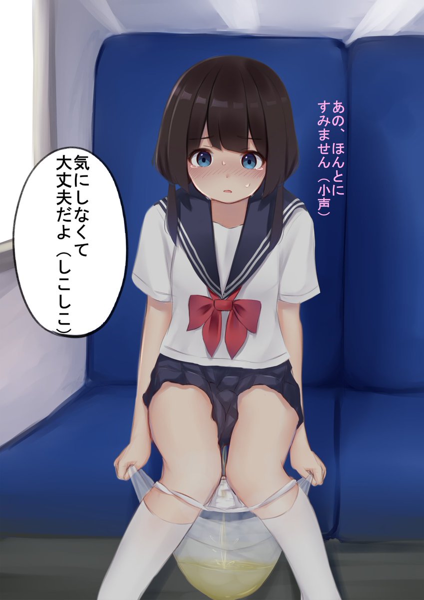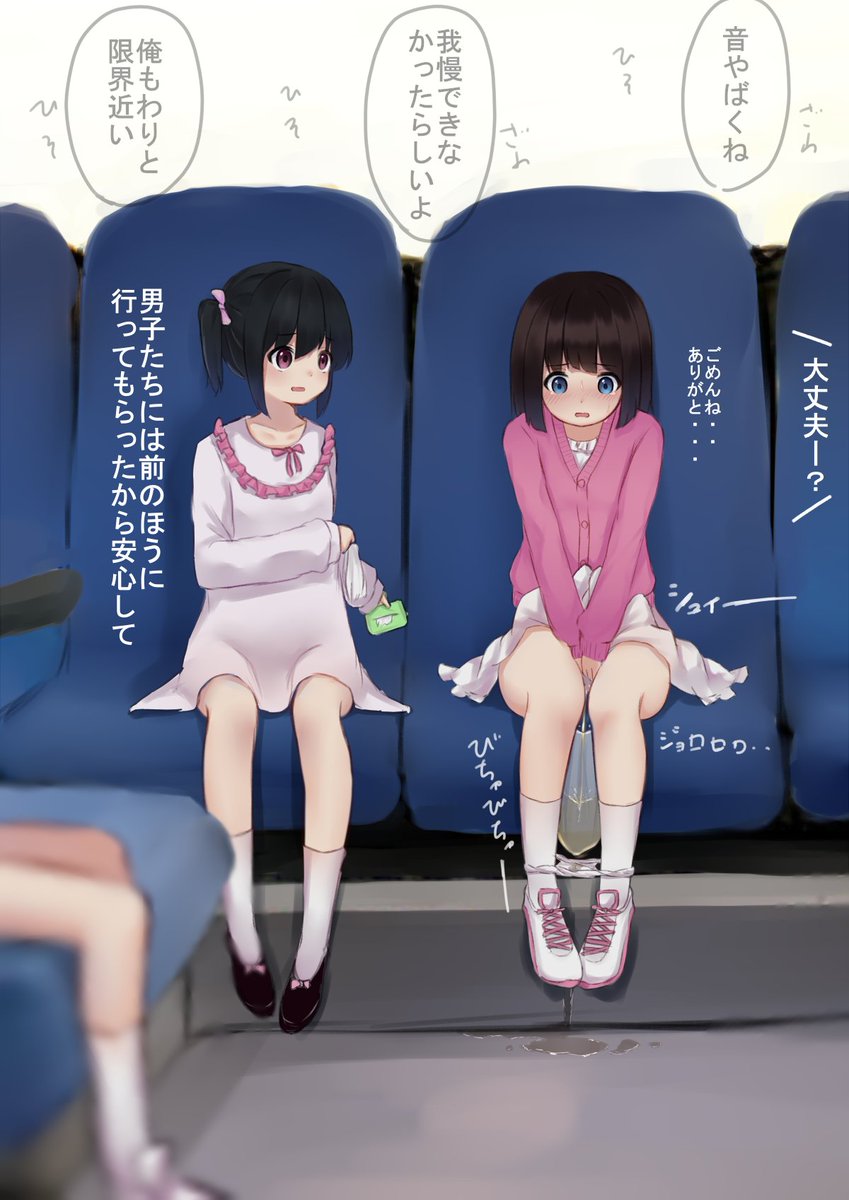 お題箱より 修学旅行のバスで限界を迎え、袋におしっこするJSちゃんお願いします。 定時で帰れたんで久しぶりに平日描いた