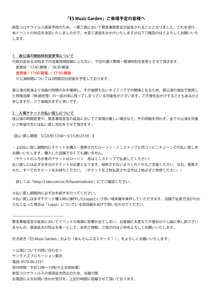 内容詳細は添付画像、もしくは「ES Music Garden」公式サイトをご確認ください。