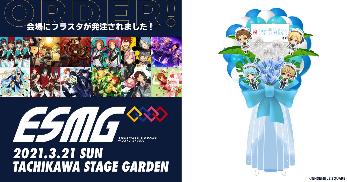 本イベントではフラワースタンドの受け付けはしておりませんが、「#あんスタ」公式サービス「ESフラスタメイカー」より電子フラスタをお送り頂けるよういたしました。