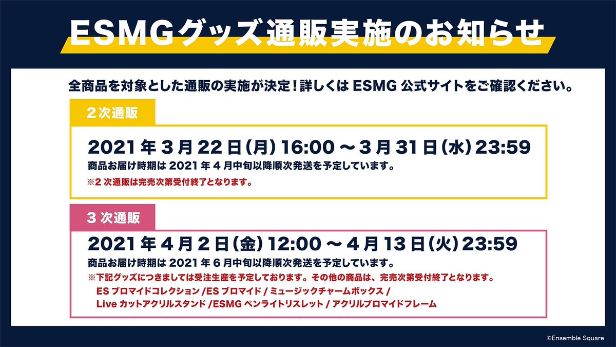 応援グッズ通販・ESMGスペシャルグッズ通販受付は「2月28日(日)23時59分まで」となりますのでお忘れなく!