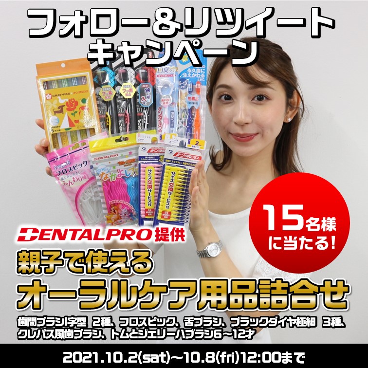 / 🦷歯の健康を応援🦷 プレゼントキャンペーン🎉 \ この投稿を フォロー&RTするだけで1⃣5⃣名様に 親子で使えるオーラルケア用品詰合せが当たる‼️ 3,000円相当👀‼️ 応募方法 1⃣