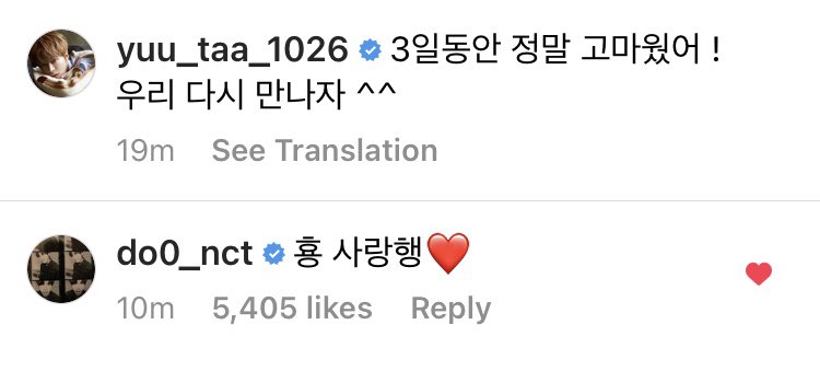 Doyoung commented on #YUTA’s latest IG post ❤️