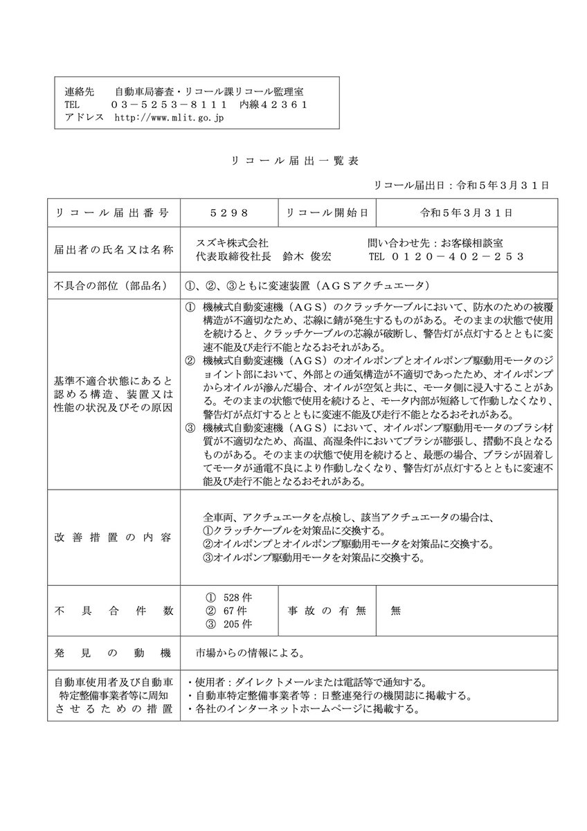 それにしても不具合件数が3桁になるまで市場措置しないのはいかがなものでしょうか。