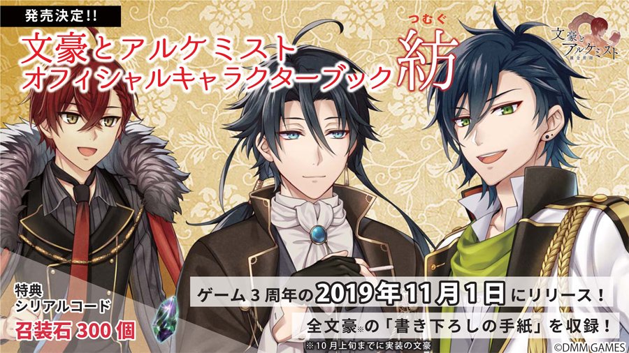 【11月1日発売】明日はゲームリリース3周年&『文豪とアルケミスト オフィシャルキャラクターブック 紡(つむぐ)』発売日🌸🌸🌸