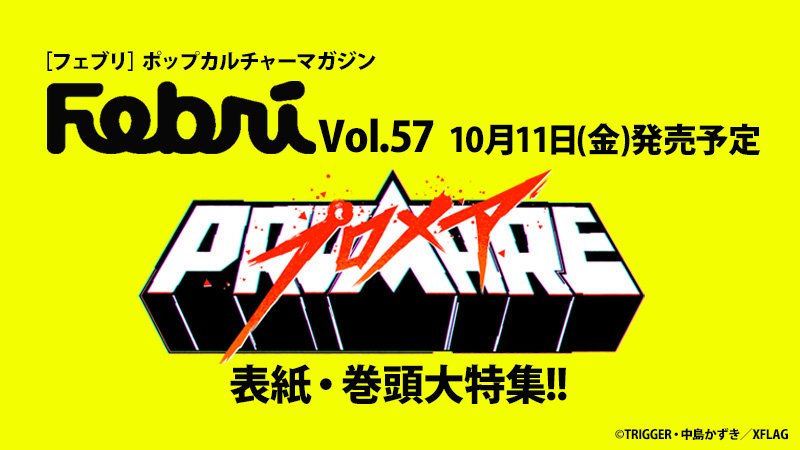 【Febri Vol.57/10月11日発売】表紙を解禁🔥 『プロメア』30ページ大特集🚒💨 監督/今石洋之さん、脚本/中島かずきさん、キャラクターデザイン・グラデーションボーイ/コヤマシゲトさんにインタビュー✍️ コンテ、原画等のメイキング資料も掲載✨
