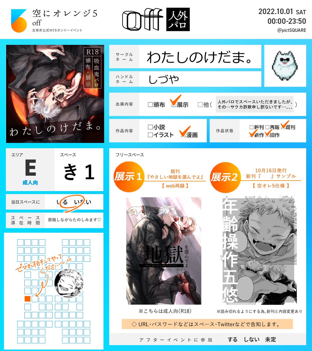 ※当日スペース内かプロフカードでURL・パスご確認ください