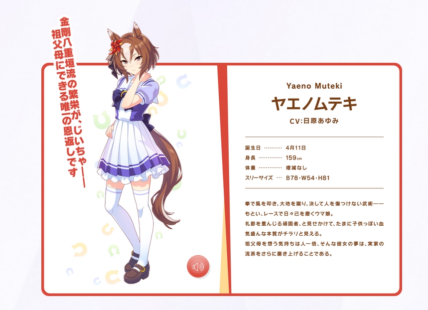 公式サイトにて、ヤエノムテキ及びサクラチヨノオーのCVが公開されています!