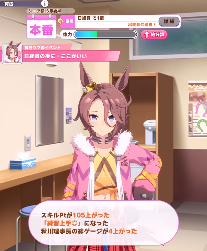 ナリタタイシンですが、絶好調からいきなり不調までやる気が下がるイベントを確認しました