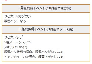 こちらのやる気ダウン&練習ベタイベントは、2年目菊花賞前の10月前半開始時に確定で発生するようです
