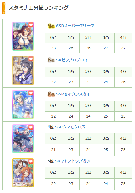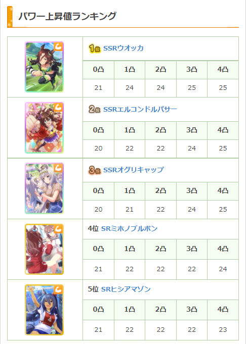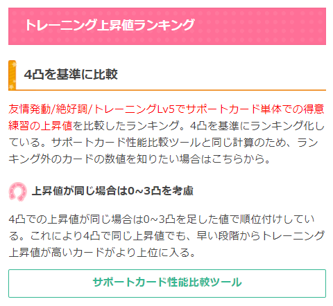 最強サポカランキング記事に、新たに「トレーニング上昇値ランキング」の項目を追加しました