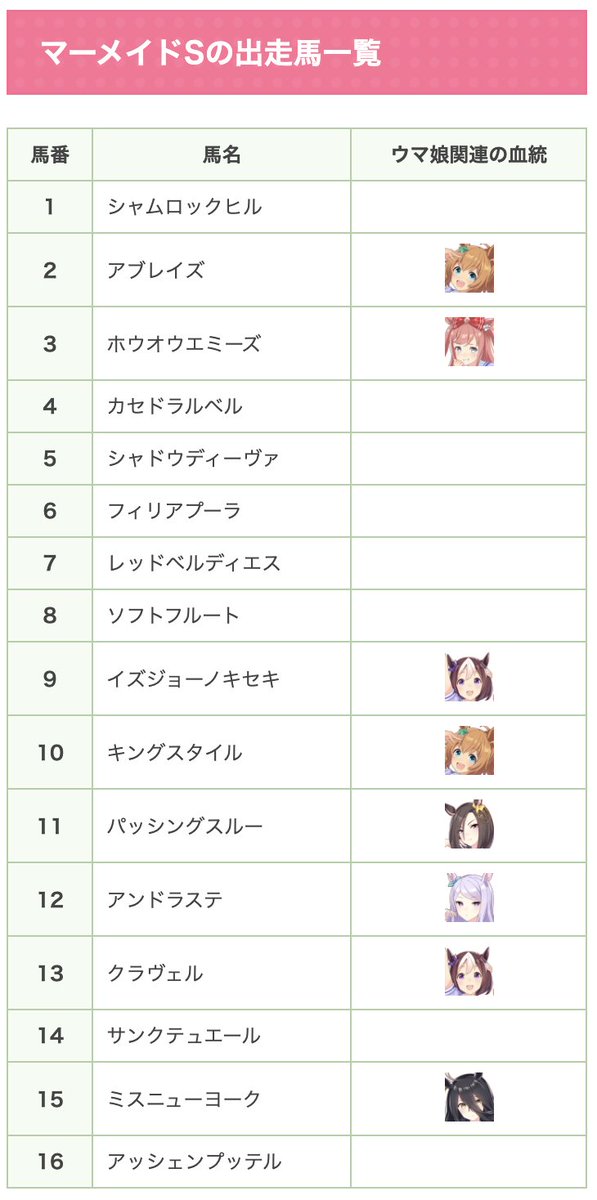 ▼マーメイドSの詳細(ウマ娘血統8頭)