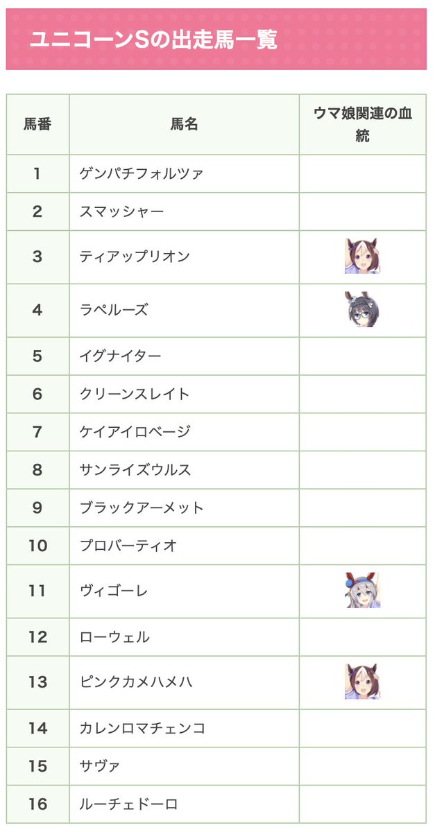 ▼ユニコーンSの詳細(ウマ娘血統4頭)