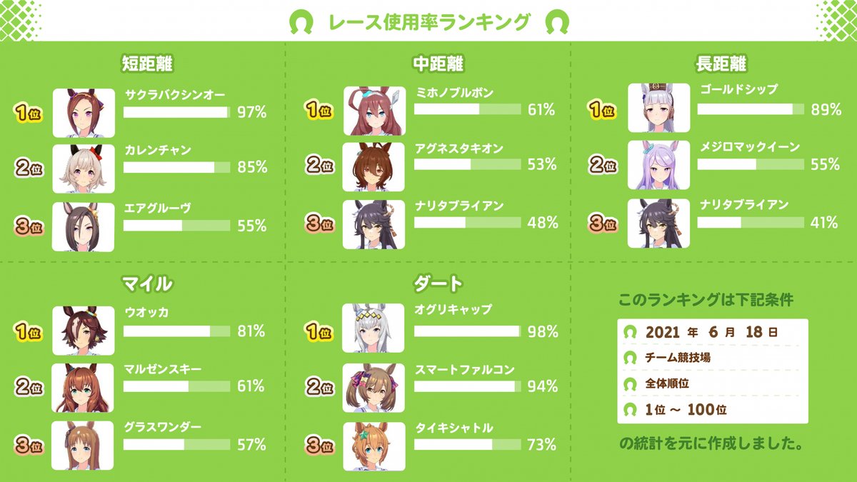 6/18時点でのウマ娘使用率をまとめました!