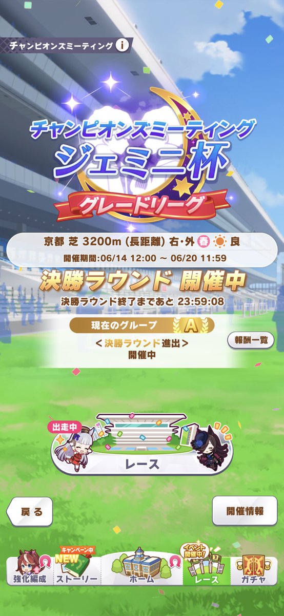 ジェミニ杯のページよりレース確認ができます