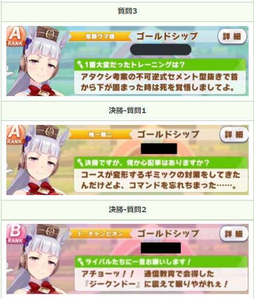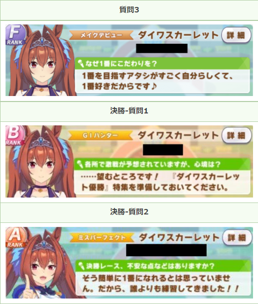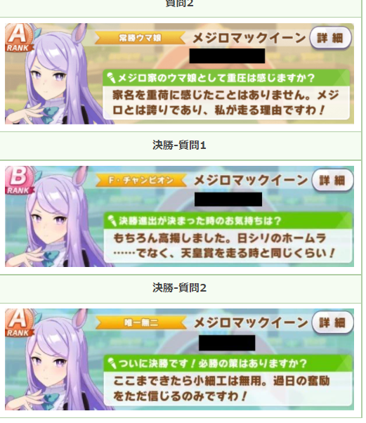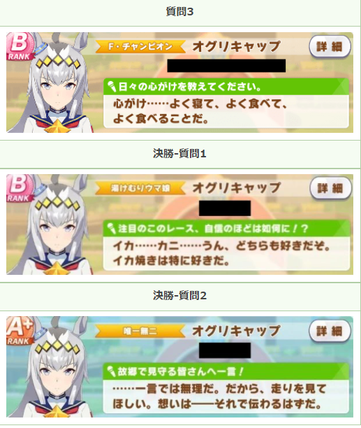 パドックから確認できる「月刊トゥインクル増刊号」のコメントは、決勝用のものが用意されています