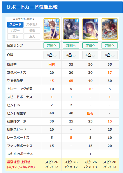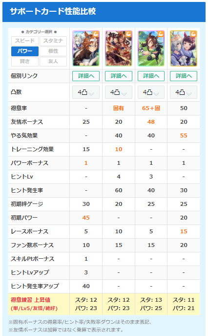 比較条件⇒得意練習/友情/絶好調/単体
