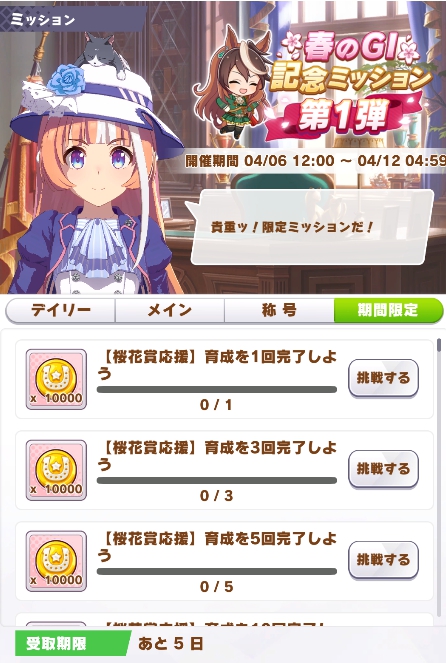 12時より期間限定ミッション「春のGⅠキャンペーン第1弾」が開催されました!