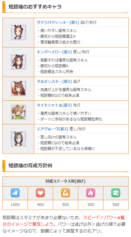 ・脚質ごとに一番前にいると中盤/終盤の2地点で発動