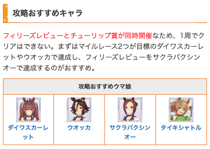 ※フィリーズレビューとチューリップ章が同時開催なので1週での達成は不可能