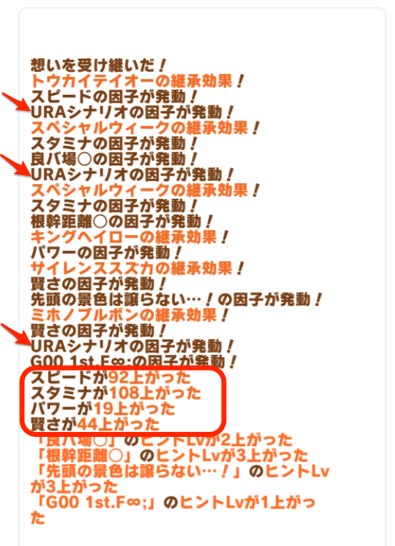 「URAシナリオ」などのレース白因子は複数ステータスが同時にアップするため、青因子+α要素として意識して組み込むのがおすすめ👀
