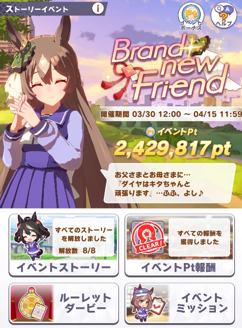 ガチャの回し忘れやクローバー交換のし忘れ、イベントストーリーの見忘れなどないようにしましょう!