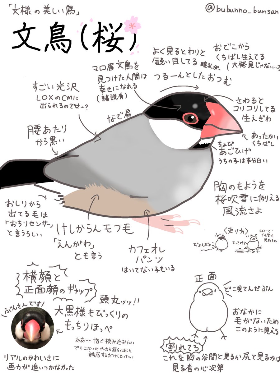 桜文鳥の魅力を1枚にまとめようとしたら全然スペース足りなかった😇