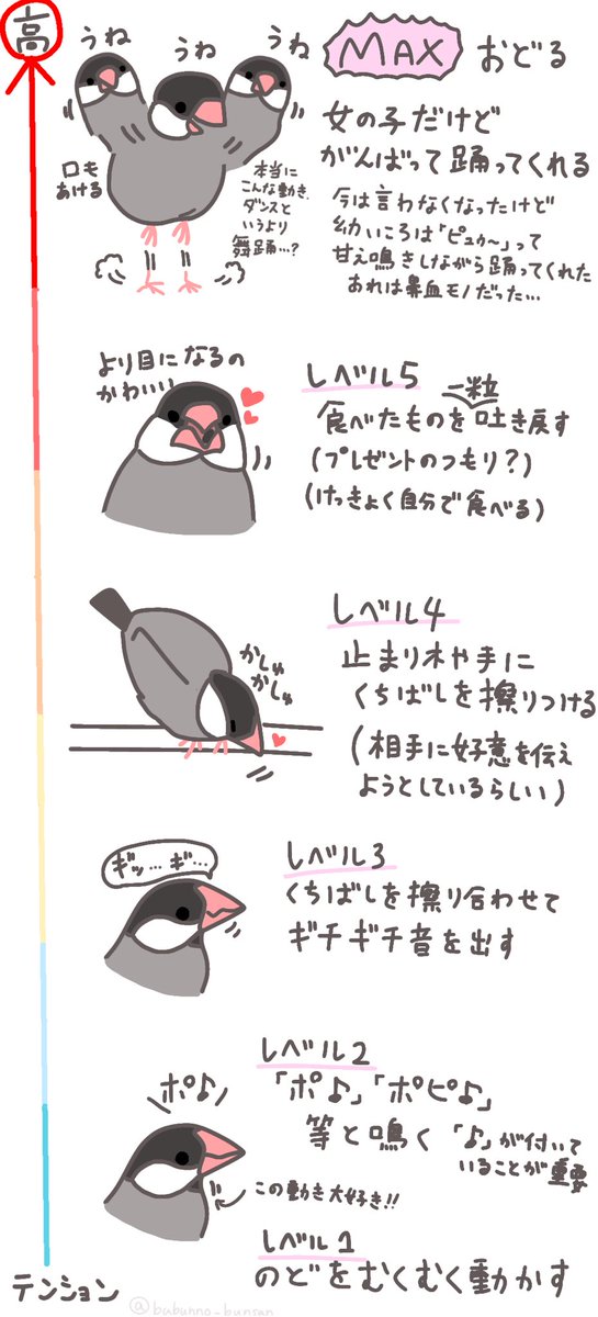 うちの文鳥のテンション図解 (もちろん個体差あると思います!)