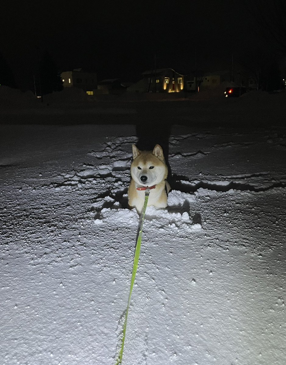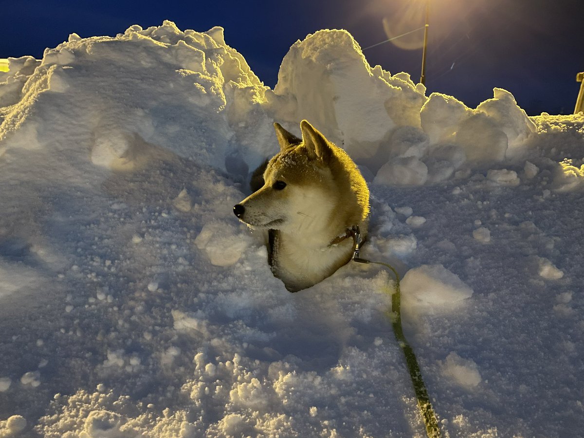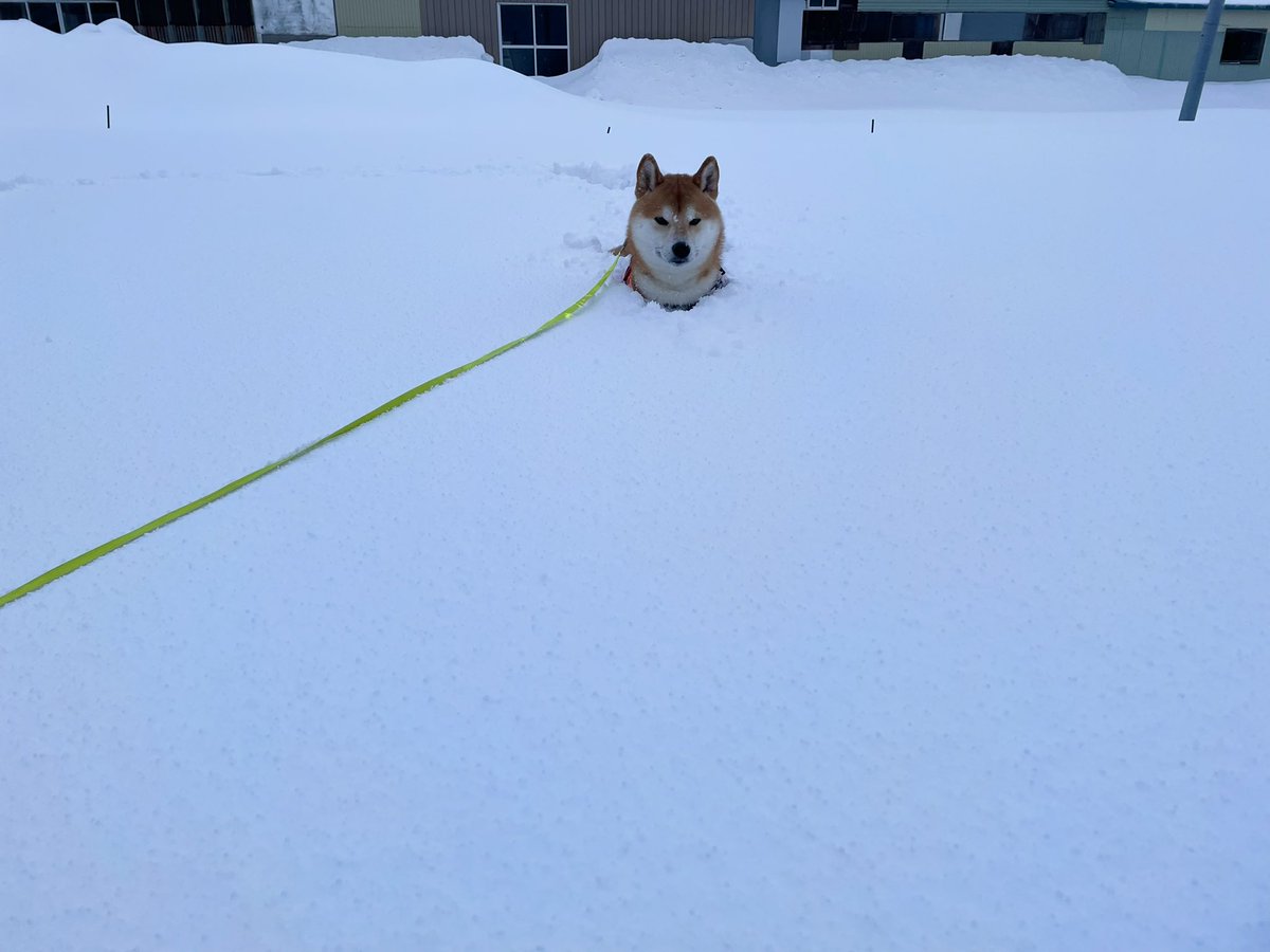絶対に雪だるま作りを阻止する柴犬