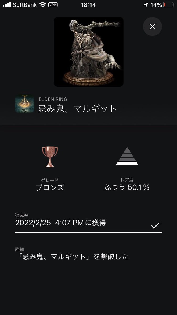 もう何万何十万という人がエルデンリングをプレイしてるのに一面のボスのトロフィー率20%以下なの最高にフロムしてる。