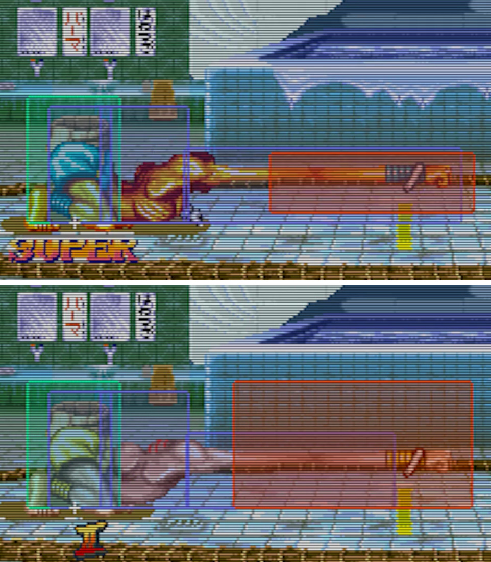 しゃがみズームパンチ比較 上:Xダルシム 下:Nダルシム Nダルの攻撃判定が厚すぎて笑うw