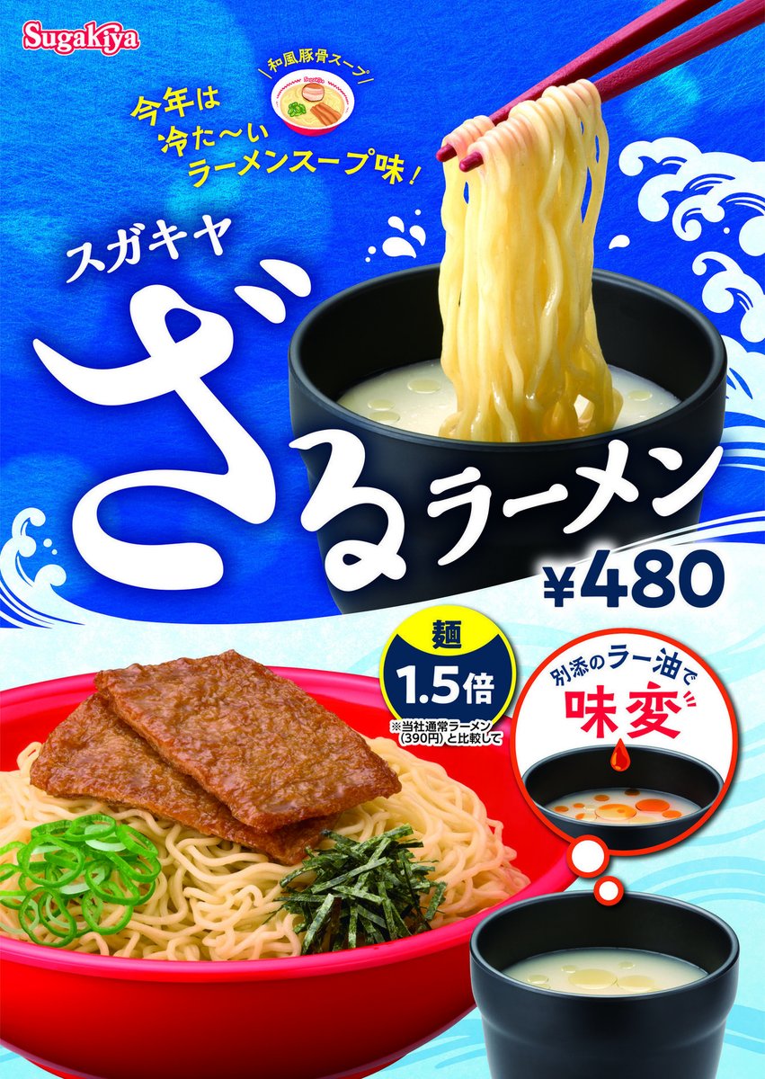 今年は専用つゆを和風とんこつスープにリニューアルし、スガキヤでしか味わえないざるラーメンに仕上げました。