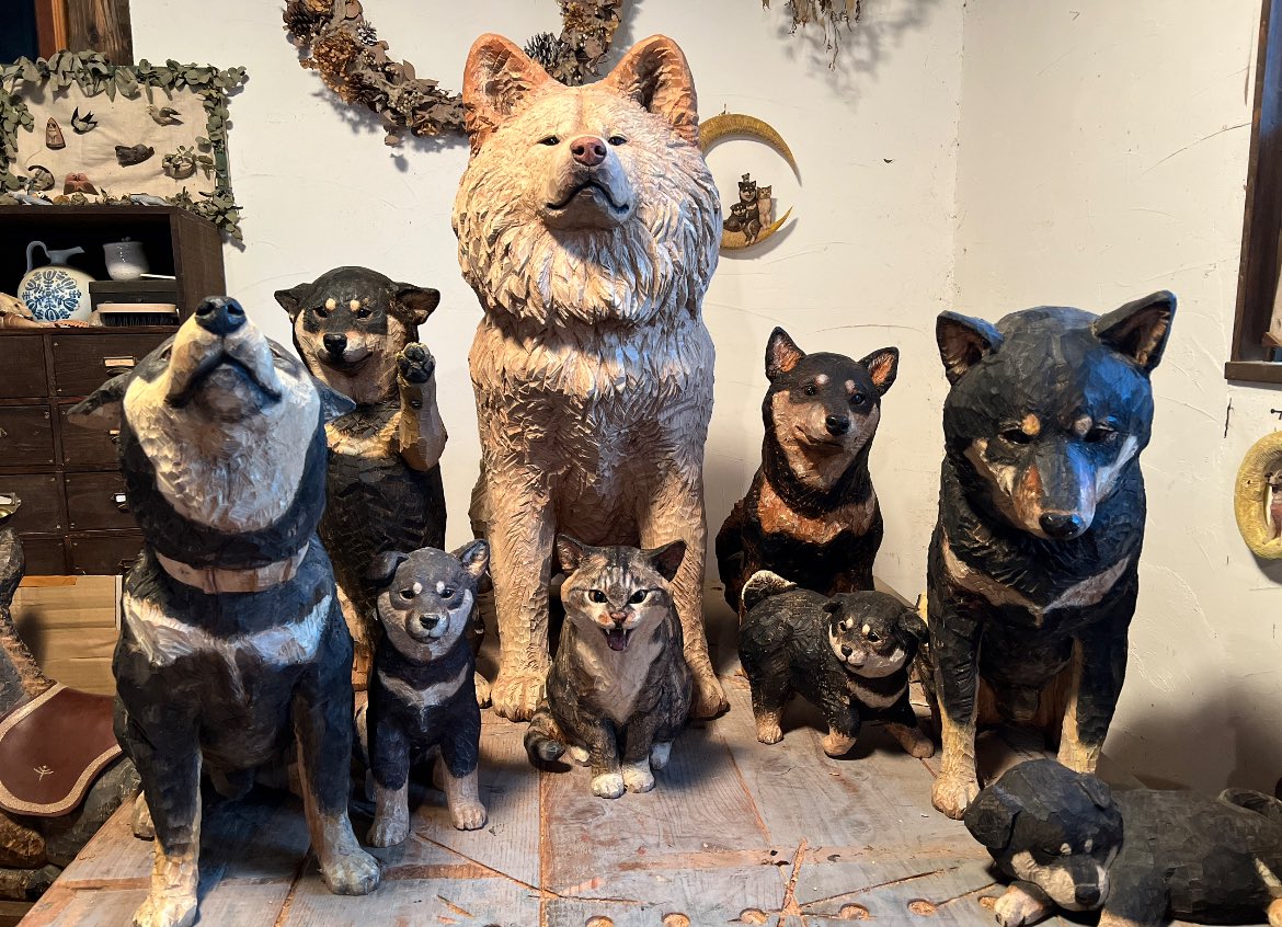 完全に彫刻と化している犬。