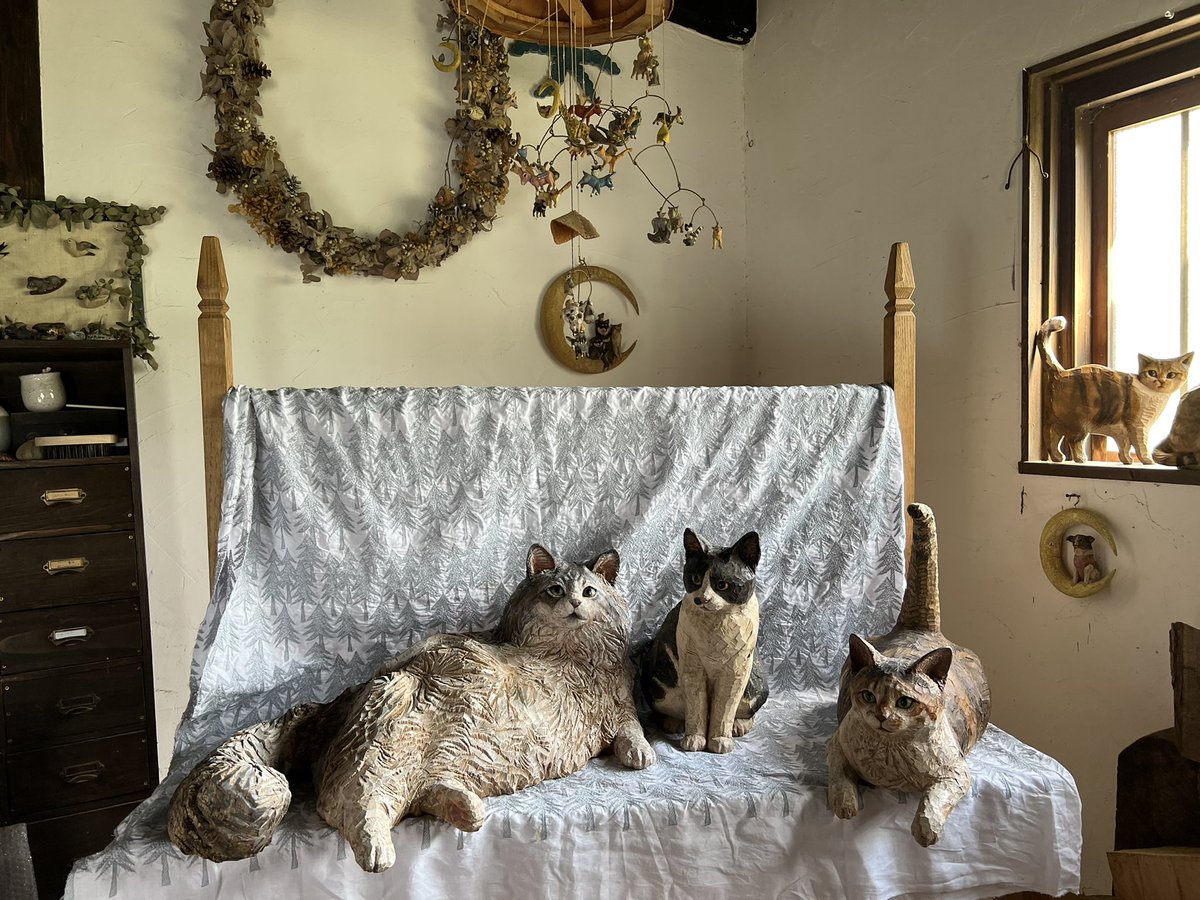 クリスマスのためのプレゼントになるような彫刻たちの抽選販売、等身大の月くんや猫のモイくん、チミトン、むぎちゃんたちの彫刻も。新作ママンも初登場します。