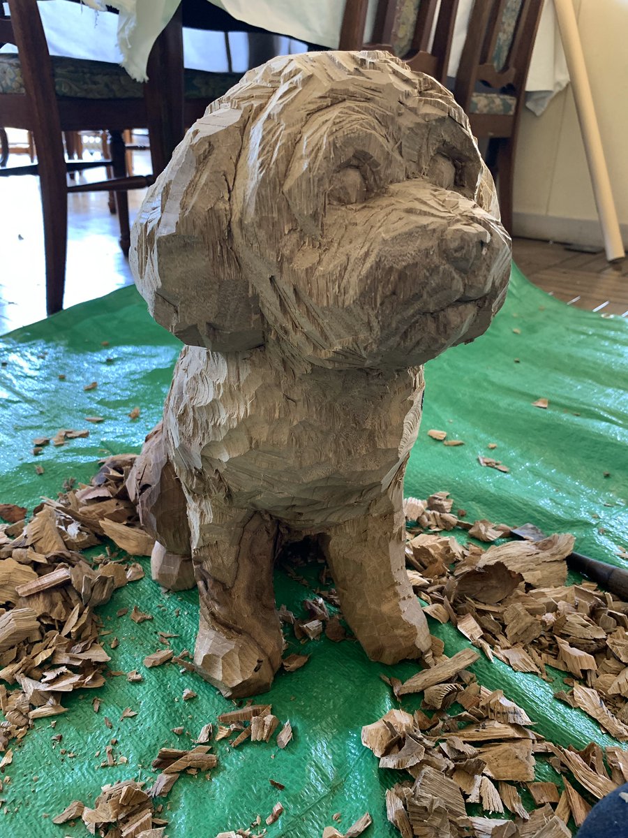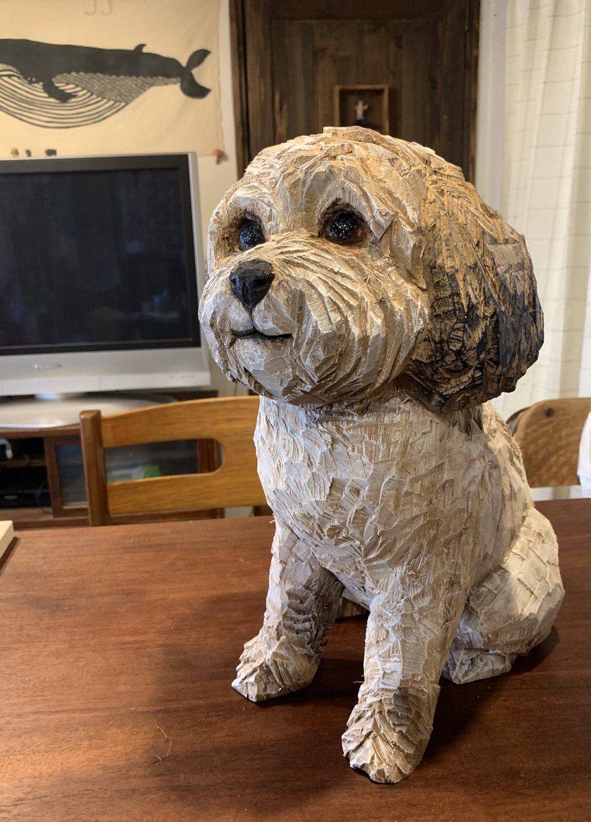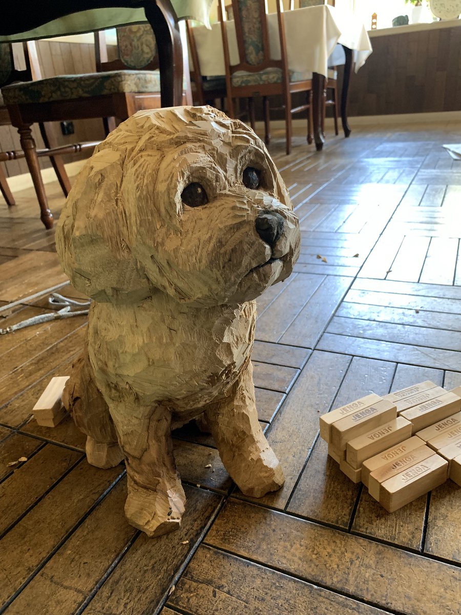 岐阜県可児市にある、レストランものがたり@monogatari_kani さんの、犬のショパンの彫刻を作りました。