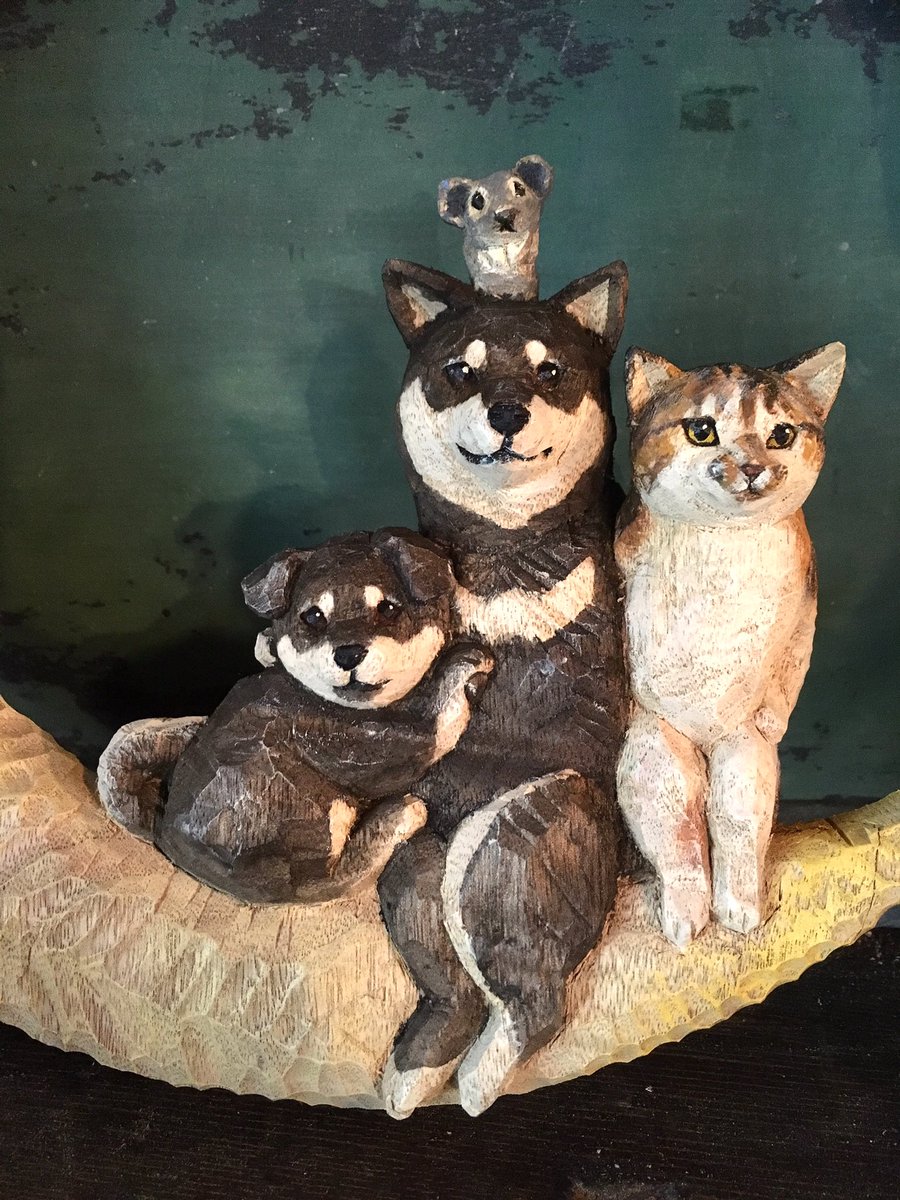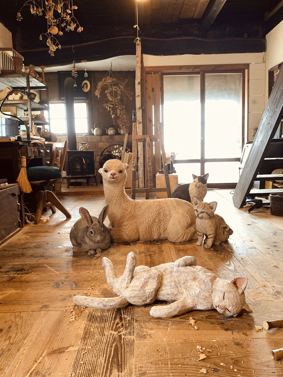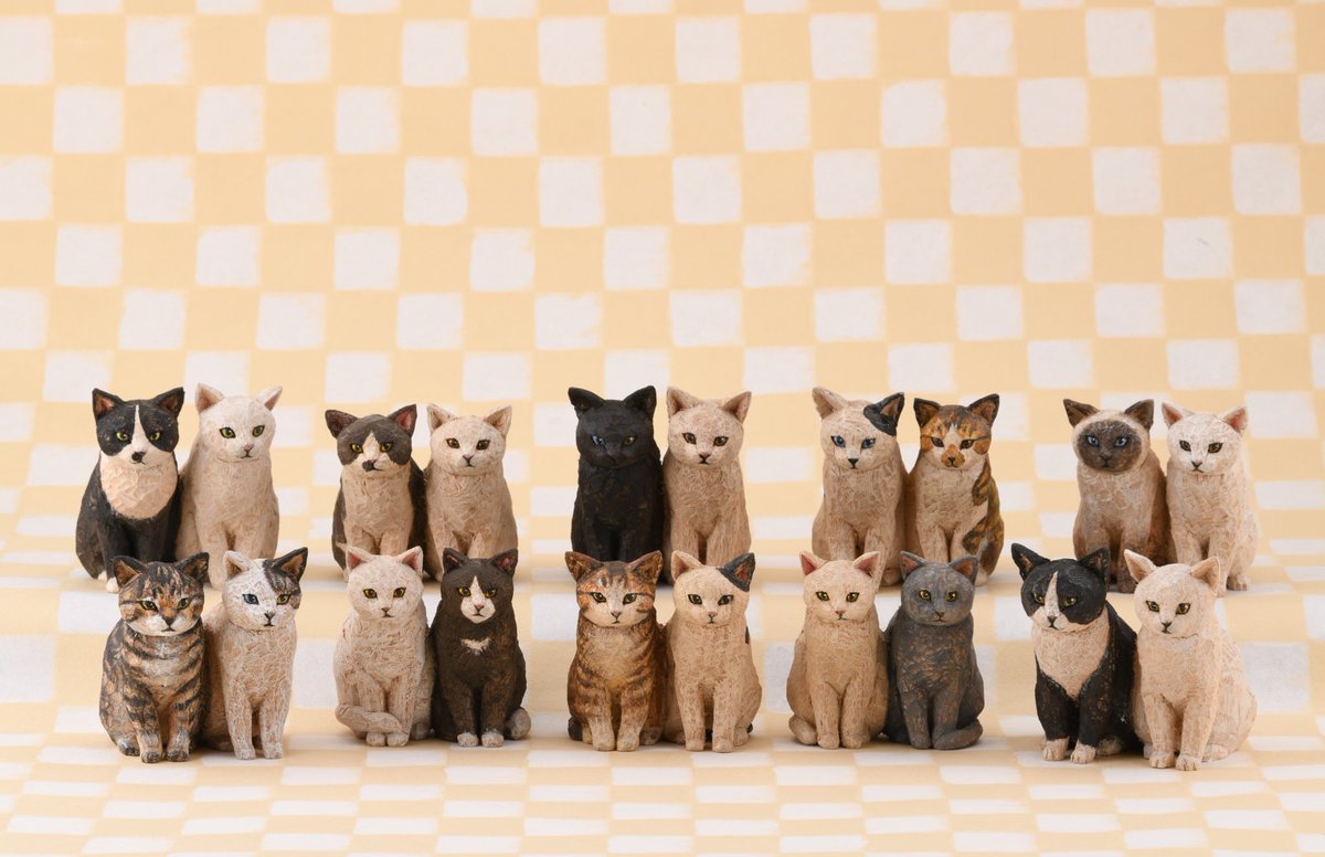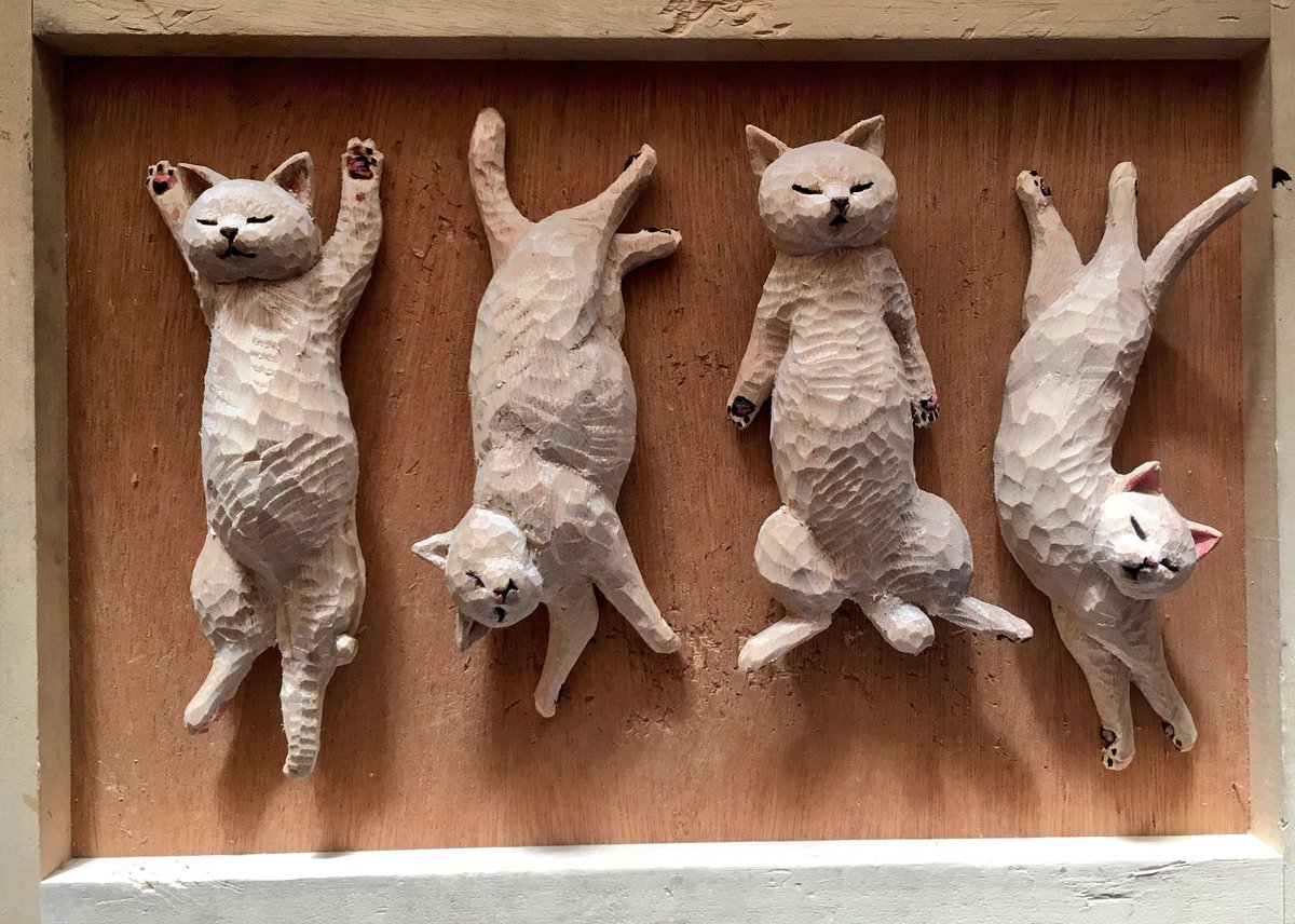 昨今の状況で展覧会に来られない方も多くおられると思うので、SNS個展というのもいいかなと思いまして、今日はたくさん猫の彫刻をアップしたいと思います。まずは書籍、「猫を彫る」より。
