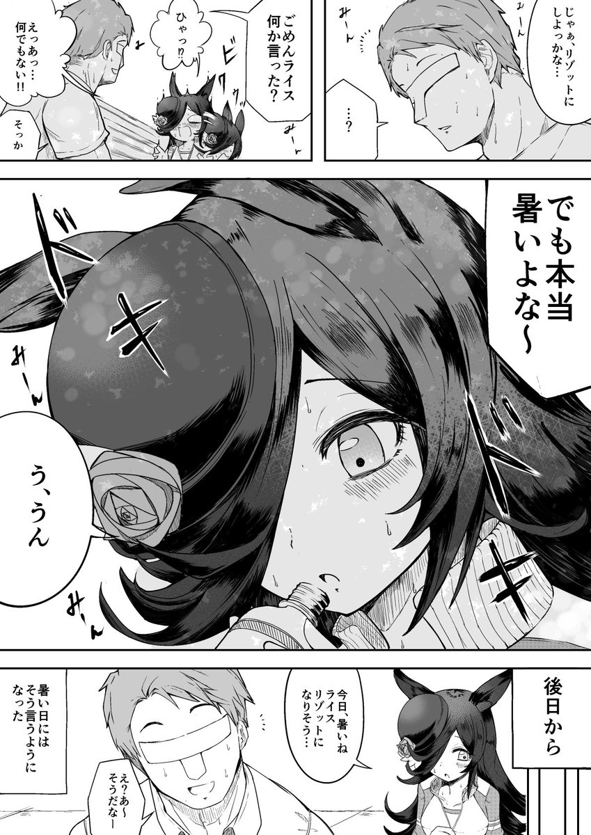 この話のライスがめちゃくちゃ可愛くて、ライスは恋愛感情とか抜きにトレーナーの「好き」でありたいんだなぁって勝手に解釈して、いじらしさに悶えました。