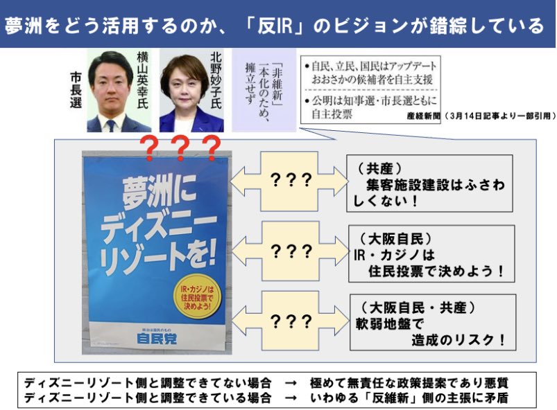 自民党さんが夢洲にディズニーリゾート誘致を掲げることについて、実現可能性に加えて、アップデートおおさかさんには