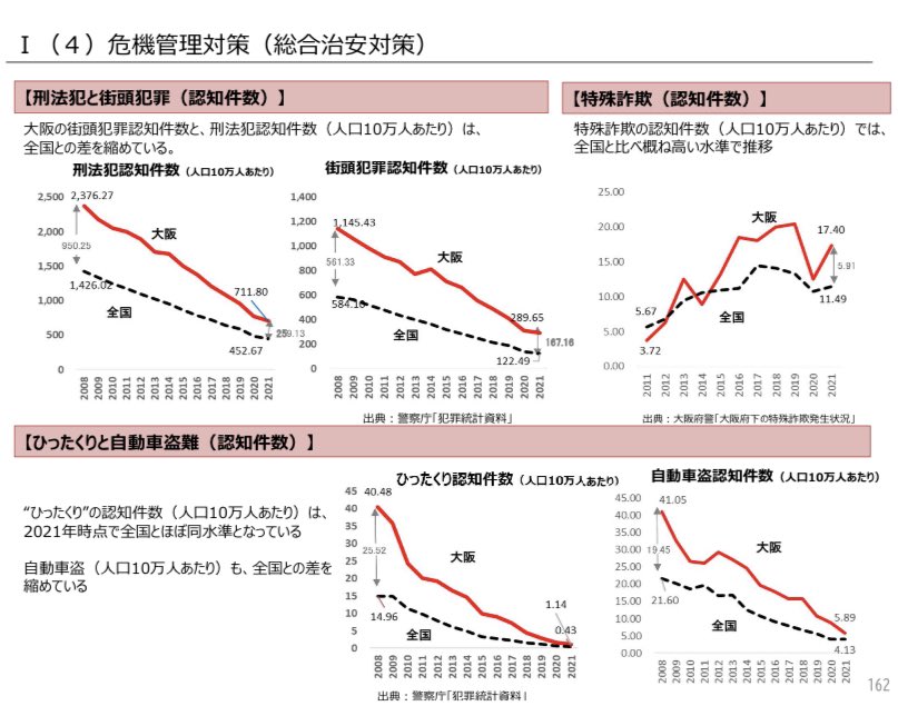 犯罪認知件数も全国との差を縮めてます。ひったくりにおいては大幅に改善。