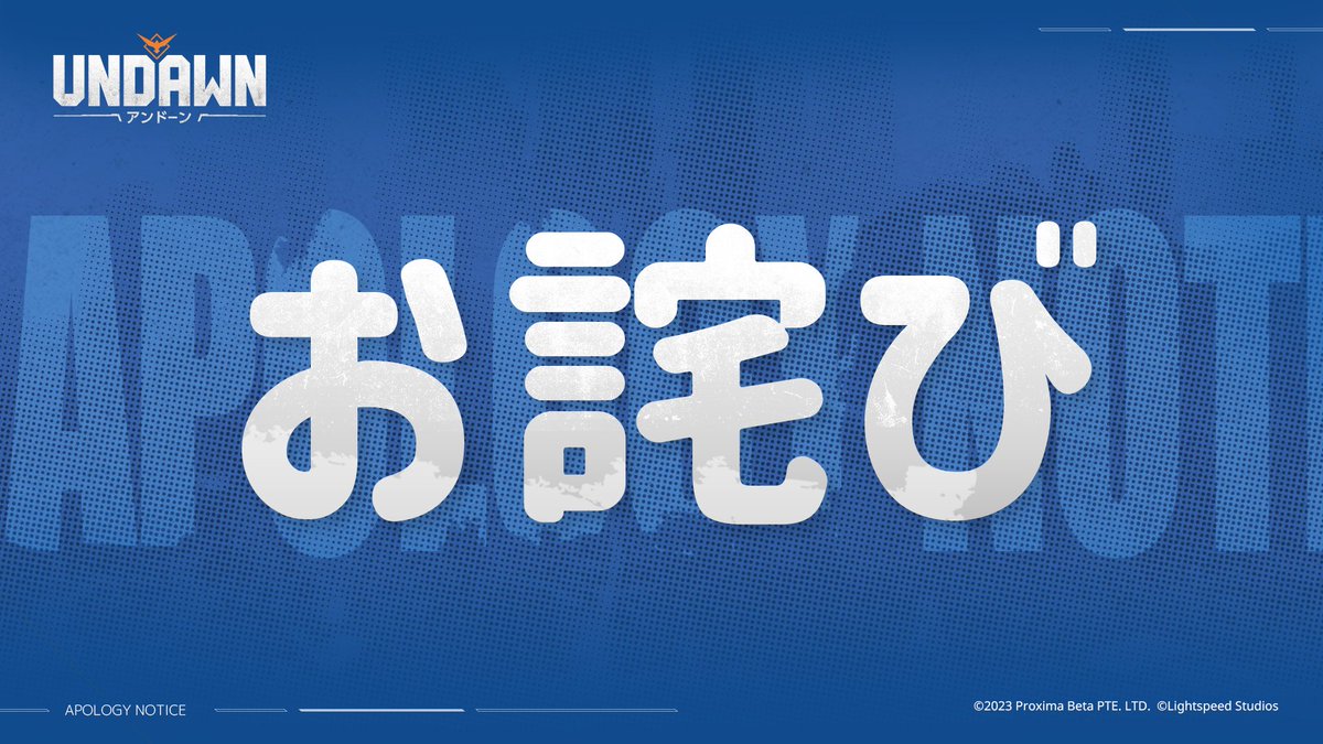 『Undawn』は本日11:00よりサービス開始を予定しておりましたが、一部システムに問題が確認されたため、サービス開始時間を延期させていただきます。