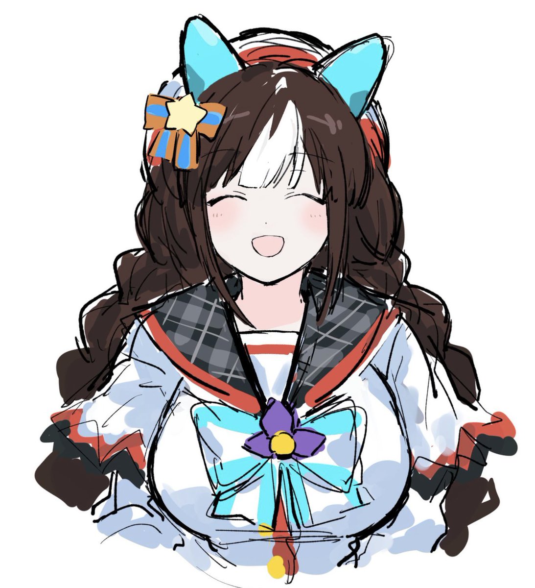 ちょうどサクラローレル実装発表されたので絵チャで描いた(バクシンオーは描いてもらいました)