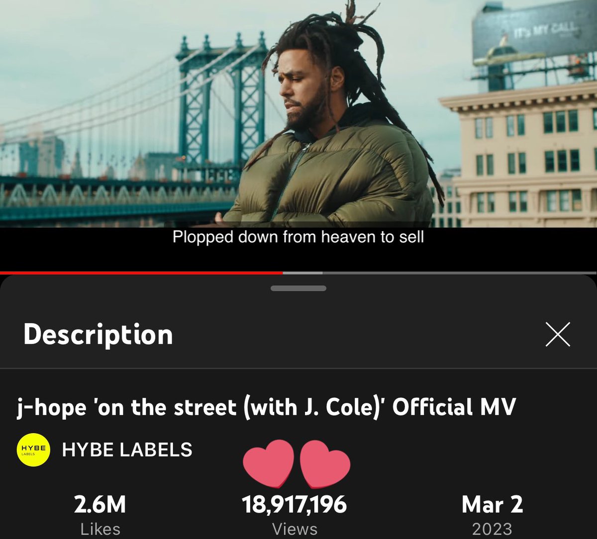 Keep going! We need to increase mv views to help get Hobi another music show win!! 👏🏼