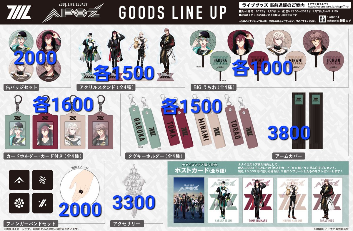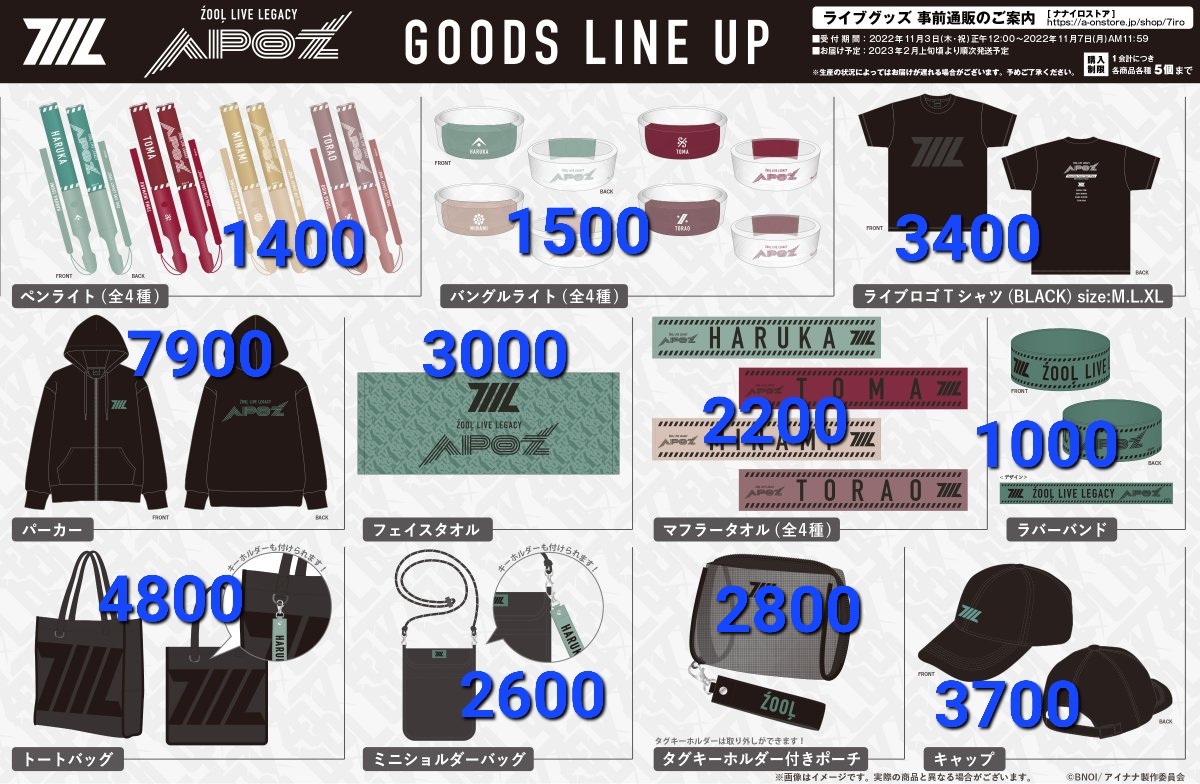 ŹOOĻ “APOZ” ライブグッズの値段表!! 急いで作成したから間違ってたら教えてください!! 使う方はどうぞー!! やったー!!