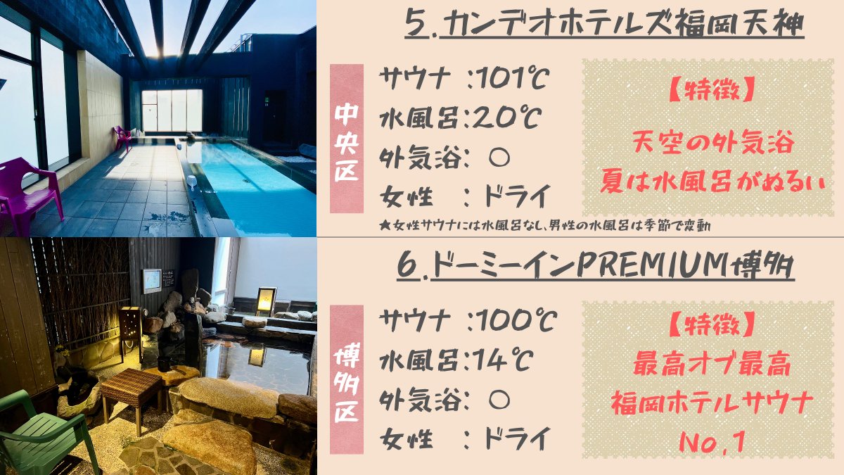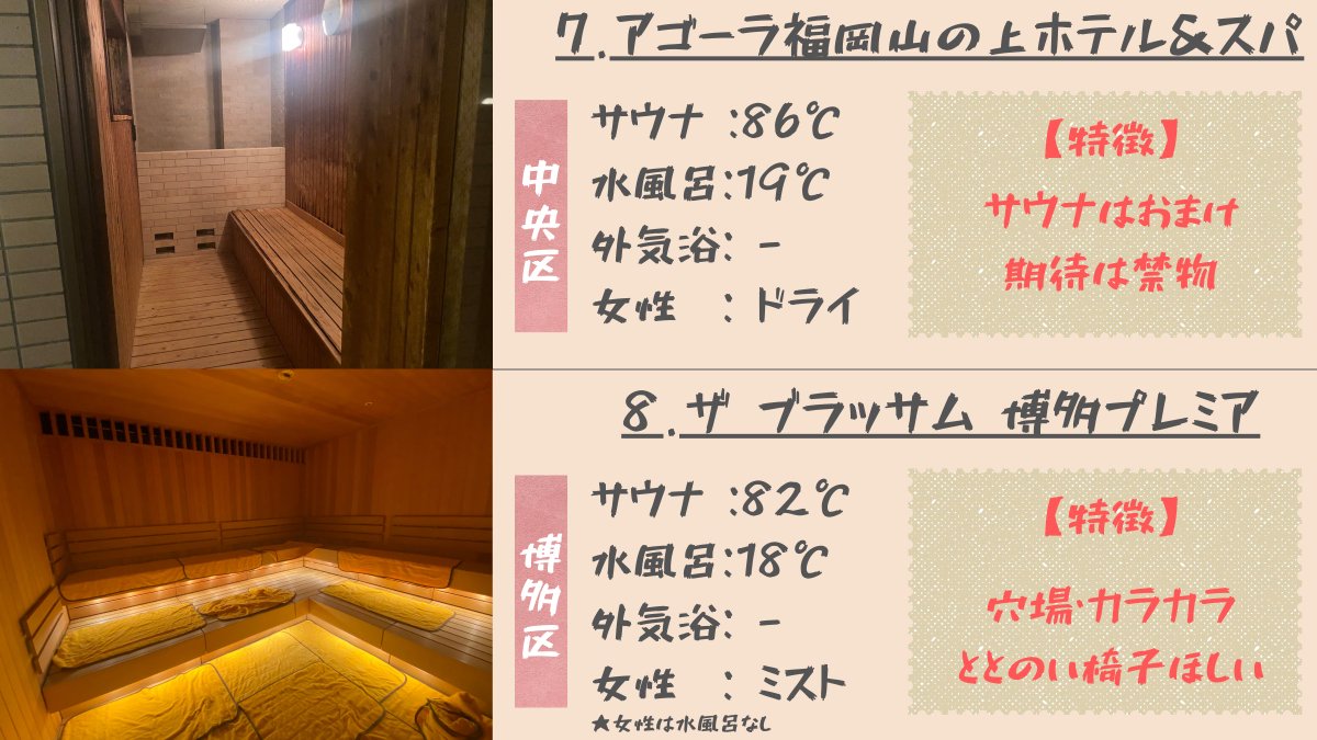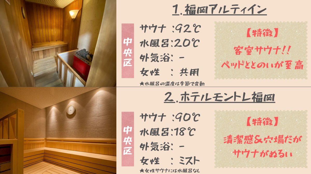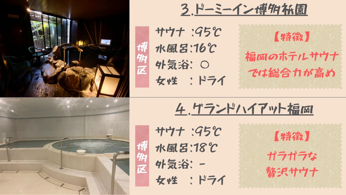 【保存版】福岡市内のサウナ付きホテルおすすめ8選 ①福岡アルティイン ②ホテルモントレ福岡 ③ドーミーイン博多祇園 ④グランドハイアット福岡 ⑤カンデオホテルズ福岡天神 ⑥ドーミーインPREMIUM博多 ⑦アゴーラ福岡山の上ホテル&スパ ⑧THE BLOSSOM HAKATA Premier 俺のオススメはリプ欄で紹介👇
