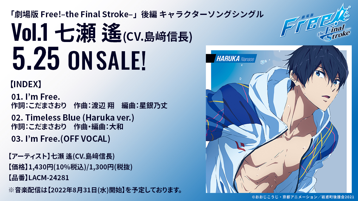 5/25(水)発売『劇場版 Free!-the Final Stroke-』キャラクターソングシングル Vol.1 七瀬 遙(CV.島﨑信長)のINDEX解禁✨