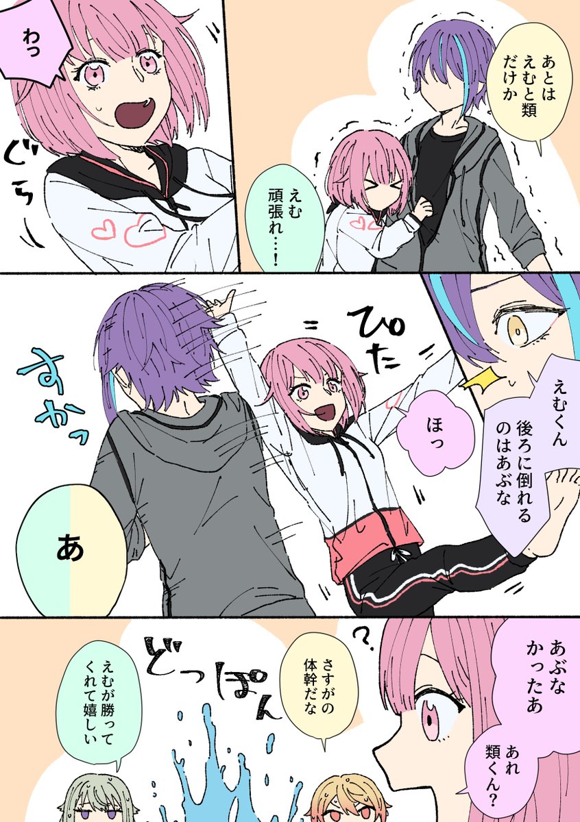 プールでわちゃって過去と今を比べたりする話です。