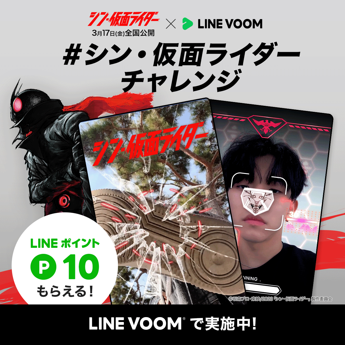 また、本日より参加者全員がLINEポイントをゲットできるキャンペーン「#シン・仮面ライダーチャレンジ」が開催。