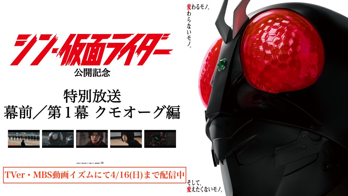また、#シン・仮面ライダー の冒頭「クモオーグ編」は4/16(日)迄、TVer・MBS動画イズムにて視聴可能です。