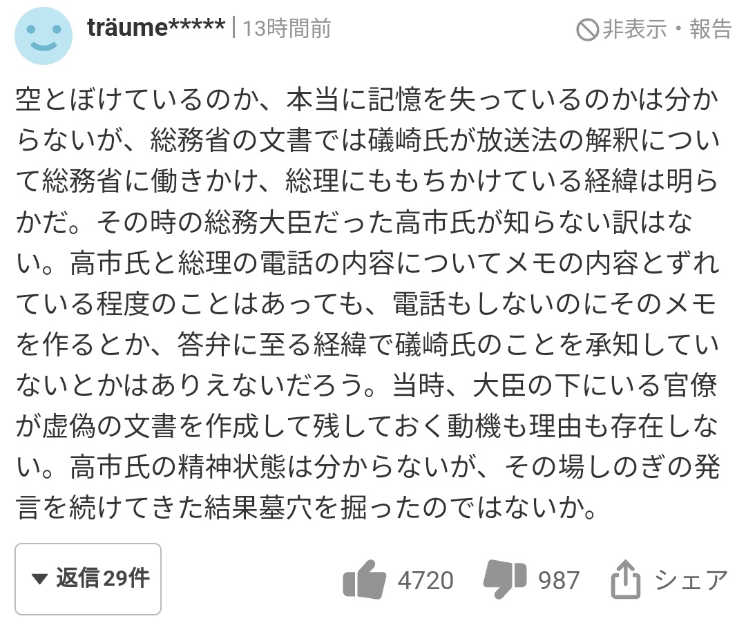 LINEの危険性を認識しながらそれをわざわざ国民の個人情報の塊であるマイナンバーと連携させた高市早苗を支持し、「中国人による土地爆買いはウェルカムだ」と言って移民受け入れを爆速で推進した国賊王安倍晋三を崇拝しながら「真っ当な日本人」を自称するとか頭大丈夫かコイツwww😂