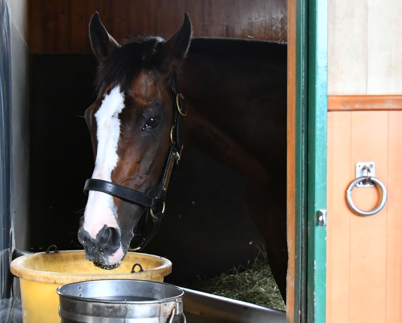 【ゴールドシップ動画①】産駒ユーバーレーベンがオークス(GⅠ)を優勝し、GⅠ馬の父となったゴールドシップ12歳本日の様子。まだ娘の快挙を実感して無い感じ?😚
